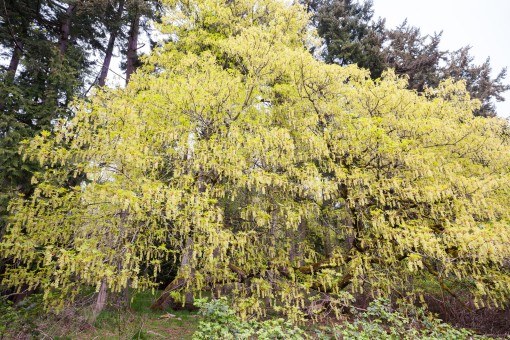 Although they don’t have the same reputation as the sugar maple of eastern Canada (yet!), bigleaf maples can also be tapped for their syrup, which is said to have a less sweet and more “earthy” flavour. Culinary values aside, it is a wonderful spring treat to walk in a grove of ancient maples draped in flowers. Seeing these huge, gnarled limbs garland themselves in blooms is a lovely reminder that you’re never too old to blossom.