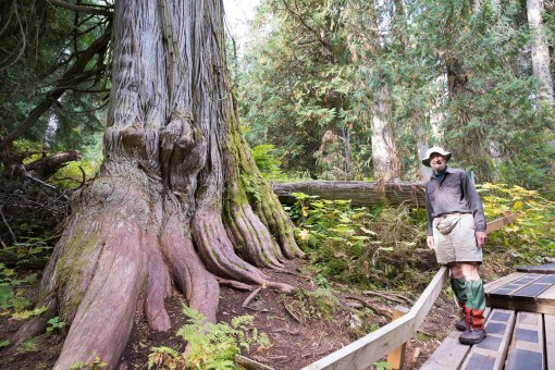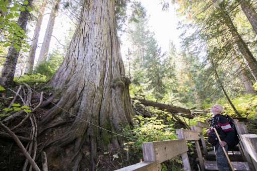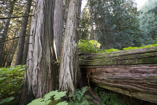 This amazing rainforest of old-growth redcedars in the Upper Fraser Valley off Highway 16 was protected through a stellar, broad-based campaign led by a collaborative effort of the Caledonia Ramblers Hiking Society, scientists at the University of Northern BC, and local environmental activists with the Dome Creek Forest Information Committee, with the support of the Lheidli T’enneh First Nation. Their campaign was smart and wise — they sought to enlist the support of a wide cross-section of people and organizations, including businesses and the local Rotary Club, far beyond the echo chamber base of already dedicated environmental activists who normally support such efforts. The result was the protection of several of the finest stands of Inland Temperate Rainforest on Earth! Of particular note was the high-quality boardwalk they built to protect the understory and tree roots and to enhance public access to this special old-growth forest.