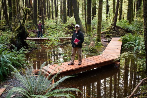 From 2013-2018, Ancient Forest Alliance’s TJ Watt led the construction of many boardwalk and trail sections in Avatar Grove with the help of dozens of incredible volunteers. This trail work was to help protect the area’s ecological integrity and increase visitor safety, ultimately fostering greater public awareness of the need to safeguard old-growth forests in BC as people came from far and wide to see the spectacular forest. We’re very grateful for the financial support of our donors and the various grants which have made this project possible!