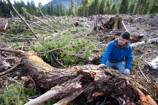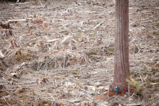 Big Lonely Doug was identified in early 2014 by Ancient Forest Alliance campaigners as the second-largest Douglas-fir tree in Canada. Prior to logging, the tree was once a part of the endangered Eden Grove that still stands unprotected next door. Dozens of massive redcedar and Douglas-fir stumps were scattered throughout this clearcut, evidence of the once grand forest that would have originally surrounded Doug.