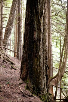 This beautiful second-growth forest close to Mt. Elphinstone Provincial Park on the Sunshine Coast of BC includes important stands of old-growth veteran Douglas-firs and redcedars, a gorgeous waterfall, and a beautiful box canyon. Cougars, deer, bears, red-legged frogs, Ensatina salamanders, and much more call the forest home. The area is heavily used by local hikers, equestrians, and mountain bikers and as an area for environmental education for local children and youth. In 2013, the former land owner, Island Timberlands, had plans to log the area’s recovering mature forests, much to the outrage of local citizens and property owners. Mosaic Forest Management now owns the area and is still standing; however, its future remains uncertain.