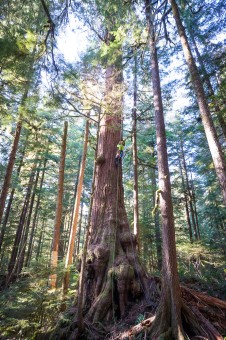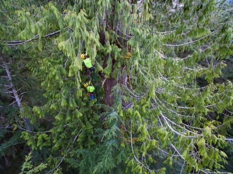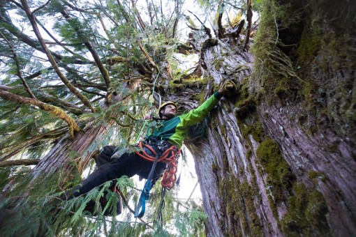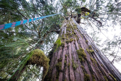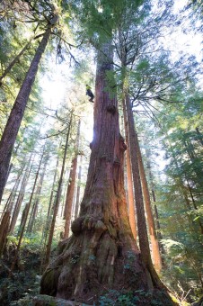 In March 2020, with the help of our friends at Expedition Old-Growth, we were able to climb and measure the grove’s biggest tree: an enormous, burly cedar that came in at 175 feet (53 meters) tall and nearly 14 feet (4+ meters) wide! Eden Grove and the remaining ancient forests on Edinburgh Mountain comprise one of the most outstanding, unprotected old-growth “hotspots” on Vancouver Island, where over 96% of big-tree forests have already been logged.