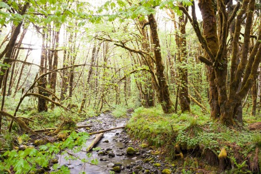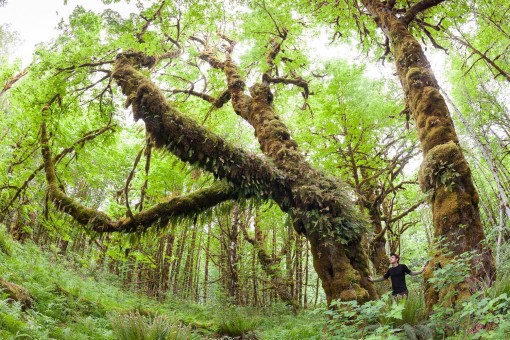Unlike most other spotlighted old-growth forests in BC that have all been coniferous or needle-leaf trees (Douglas-firs, Sitka spruce, western redcedars, etc.), this is an old-growth deciduous rainforest, making it one of the most unique old-growth forests in coastal BC. Diverse herbaceous plants, including spiny-stemmed giant devil’s club, grow here. Abundant tracks and scat reveal that legions of elk, deer, wolves, cougars, and black bears make this area home. This area has also been nicknamed “Fangorn Forest” after the forest in The Lord of the Rings.