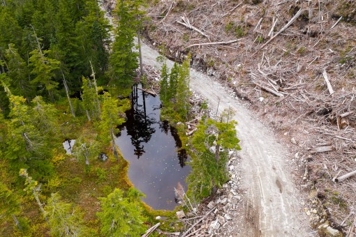 Located outside the town of Powell River in the territory of the Tla’amin and shíshálh First Nations, Mt. Freda is home to some of the oldest trees in Canada. High in the mountains, locked in by snow for much of the year, these forests are incredibly slow-growing and delicate ecosystems. Some ancient yellow cedars logged on Mt. Freda were found to be over 1200 years old. This 21-hectare cutblock, located at over 3,609 feet (1,100 metres), is powerful evidence of the extreme lengths that logging companies are going to carve out the last vestiges of old-growth from the landscape.