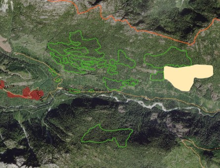 Located on the steep slopes of the Taylor River Valley, the stand boasts rare ancient Douglas-fir trees and old-growth redcedars, a beautiful, fern-laden understory, and important habitat for black bears and other wildlife. Logging plans also threaten this area. BC Timber Sales, the BC government’s logging agency, has roughly nine old-growth cutblocks planned in the upper Taylor River Valley, totalling approximately 191 hectares or about 357 football fields.