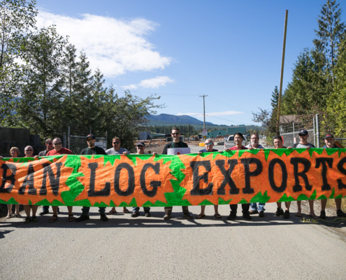 VANCOUVER ISLAND, BC – Today at noon the Ancient Forest Alliance will join members of the Public and Private Workers of Canada (formerly the Pulp, Paper, and Woodworkers of Canada) (PPWC at www.PPWC.ca) as they rally at their Long Hoh mill in Errington (at 1125 Clark Road between Qualicum Beach and Port Alberni off Highway 4, from 12:00 noon to 1:00 pm) on Vancouver Island in protest of raw log exports following the shut down and shift reductions in the mill since last month, with another shutdown and major shift reductions pending this week for their Ladysmith mill, due to a shortage of logs. In total about 130 workers could be affected by the closures and shift reductions.