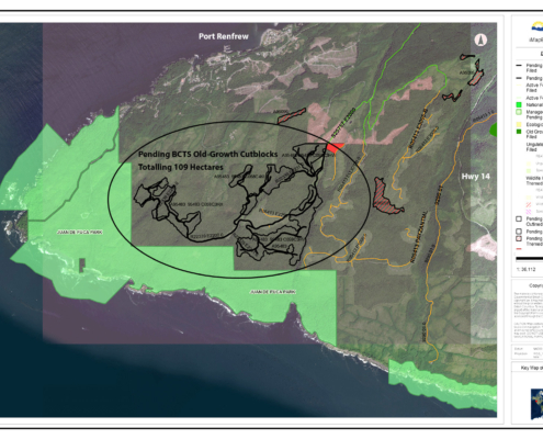 Conservationists with the Ancient Forest Alliance (AFA) are outraged that the BC government’s logging agency, BC Timber Sales, is currently auctioning off 109 hectares of old-growth forest adjacent to Juan de Fuca Provincial Park on Vancouver Island.
