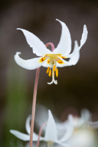A graceful straight stem, curving elegantly at the top like a tiny streetlamp with beams of golden light spilling down — the fawn lily is such a picturesque beauty, that once seen, it will never be forgotten. On the BC coast, there are actually two species of fawn lily that match each other in elegance.