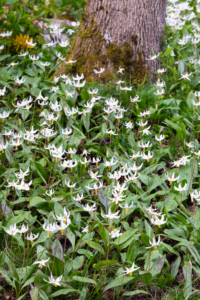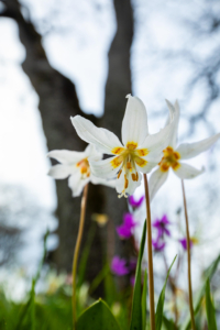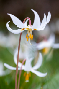 Be sure to try and catch a glimpse of their fleeting beauty in early spring. A great place to see white fawn lilies is the St. Mary’s Church & Cemetery in Metchosin, where thousands of these flowers blanket the ground in early April. Pink fawn lilies are commonly seen around the San Juan Spruce near Port Renfrew, among other spruce floodplain zones on the west coast.