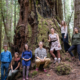 • The six AFA team members stand beside each other in front of an old-growth Douglas-fir tree.
