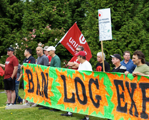 “We want to bring attention to the government,” said PPWC president Arnie Bercov. “They are exporting 60 per cent of second growth logs and exporting the future of young people.”
