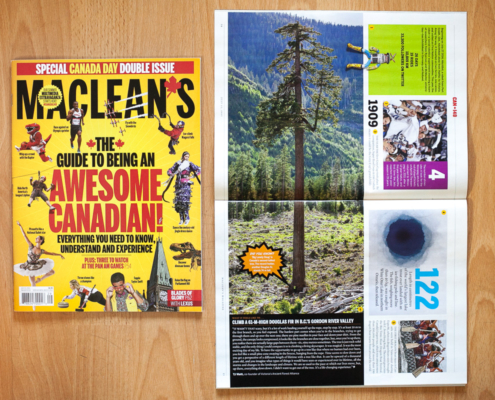 MacLean's magazine has featured a photo by the AFA's TJ Watt. This shot of Big Lonely Doug was captured during the tree climb and featured in the July 2015 'Guide to Being an Awesome Canadian'!