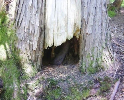 The dens he investigated were within the trunk or cavity of cedar trees at elevations of 700 to 920 metres. Three-quarters of the best old-growth den habitat has already been logged in the area, McCrory observed, adding it is important to protect what little remains.