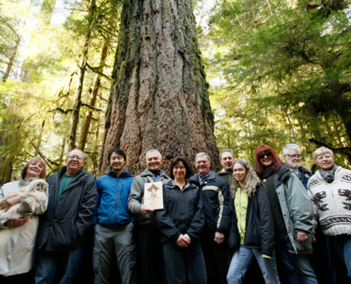 Conservation groups honour Scott Fraser for his efforts in saving endangered old-growth forests and related jobs. The award was presented by Ken Wu and TJ Watt of the Ancient Forest Alliance, a non-profit environmental group working to protect old-growth forests and ensure sustainable second-growth forestry. The award is jointly sponsored by the Youbou TimberLess Society, former employees of the now-defunct Youbou sawmill who continue to advocate sustainable forest policies.