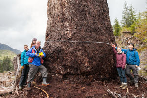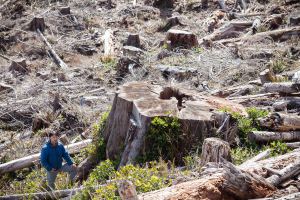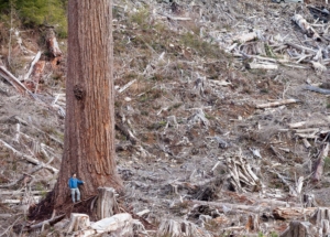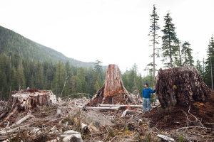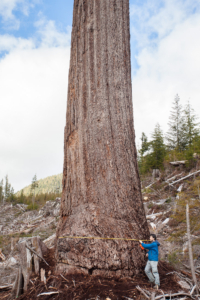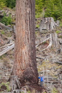 Big Lonely Doug was identified in early 2014 by Ancient Forest Alliance campaigners as the second-largest Douglas-fir tree in Canada. Prior to logging, the tree was once a part of the endangered Eden Grove that still stands unprotected next door. Dozens of massive redcedar and Douglas-fir stumps were scattered throughout this clearcut, evidence of the once grand forest that would have originally surrounded Doug.