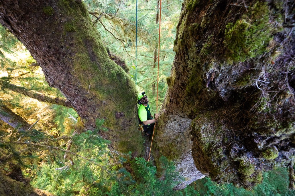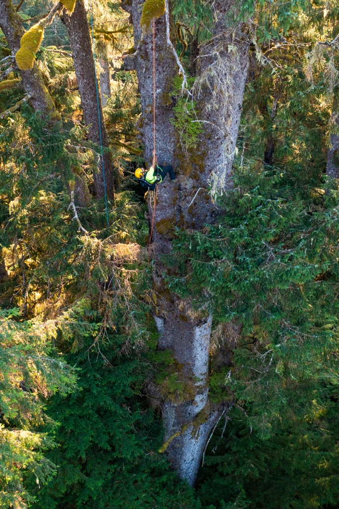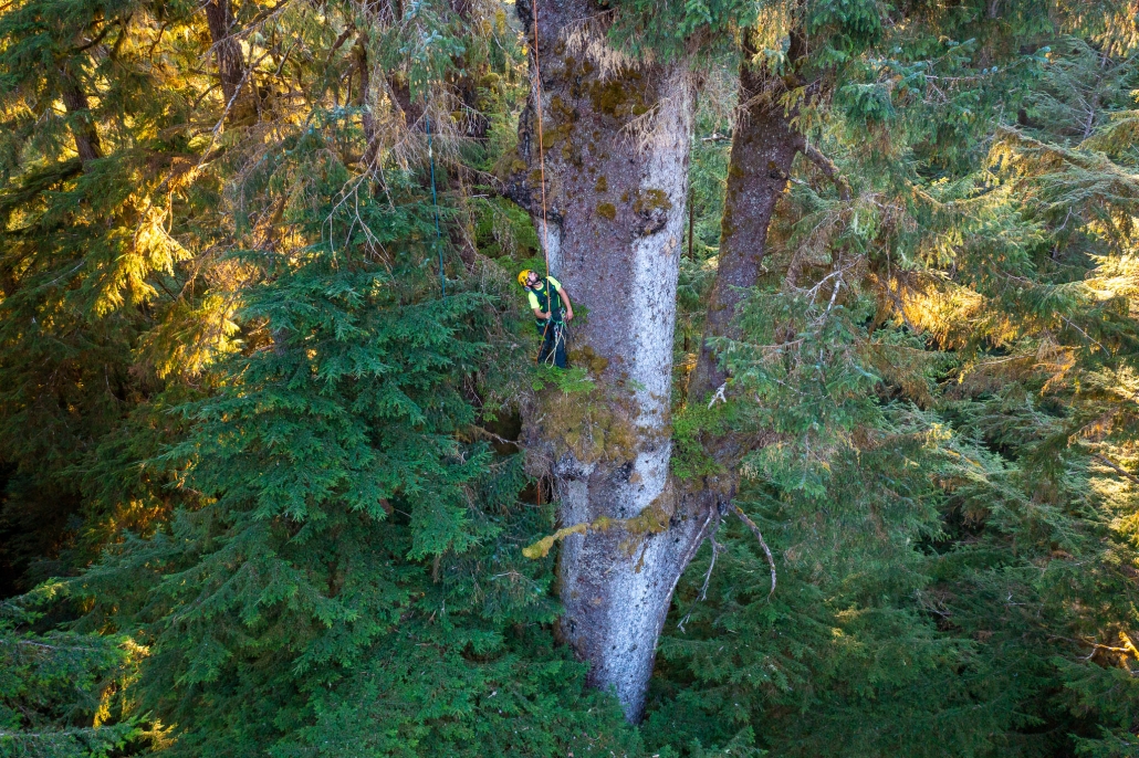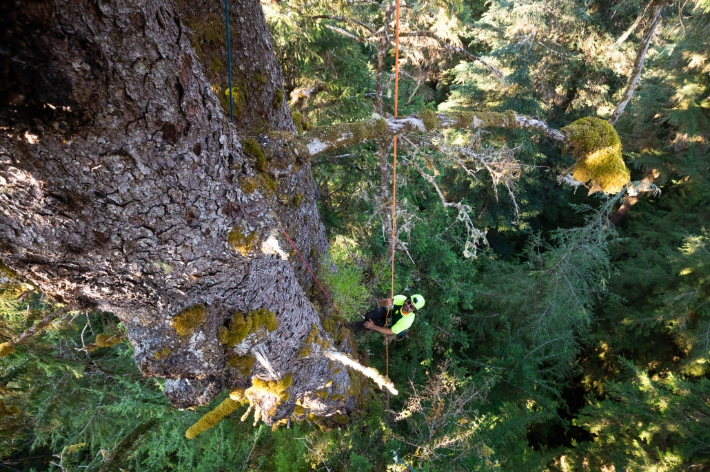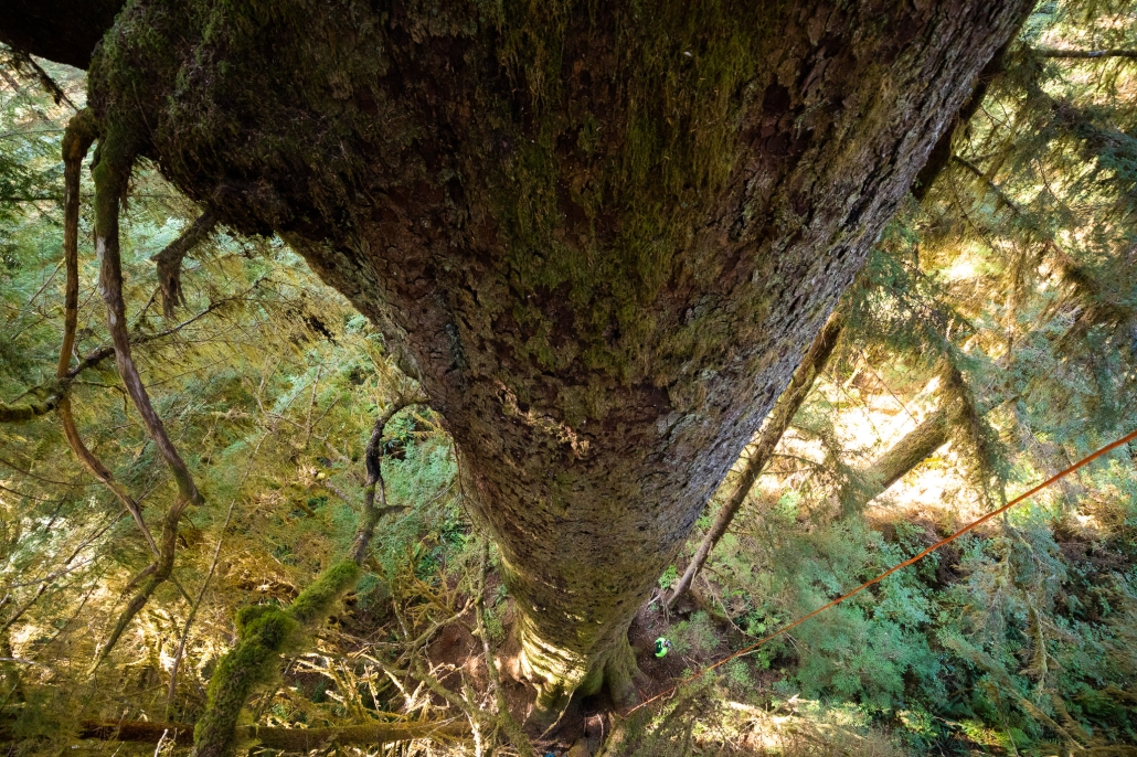 The tree was identified by AFA’s TJ Watt and Ian Thomas while exploring the Carmanah Valley in the spring of 2022 and climbed later in the fall with the help of professional arborists with Bartlett Tree Experts. The images are being released for the first time today to celebrate Earth Week. See an incredible video of the climb here.
