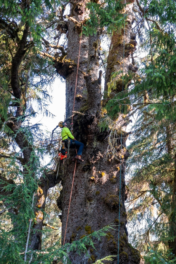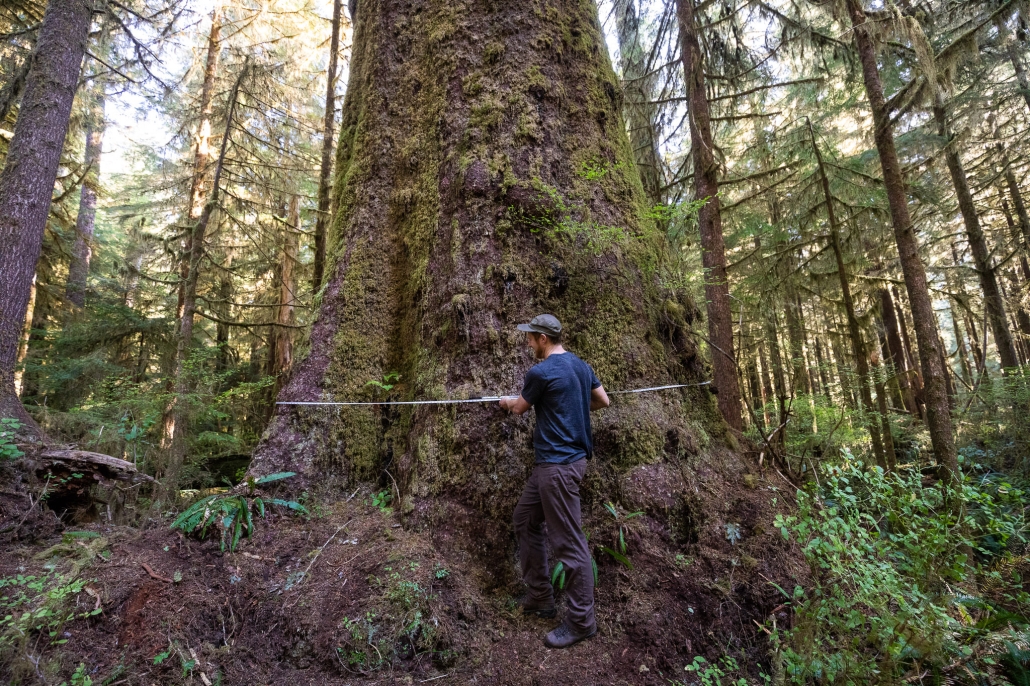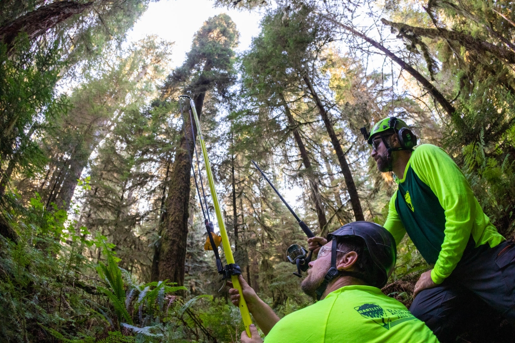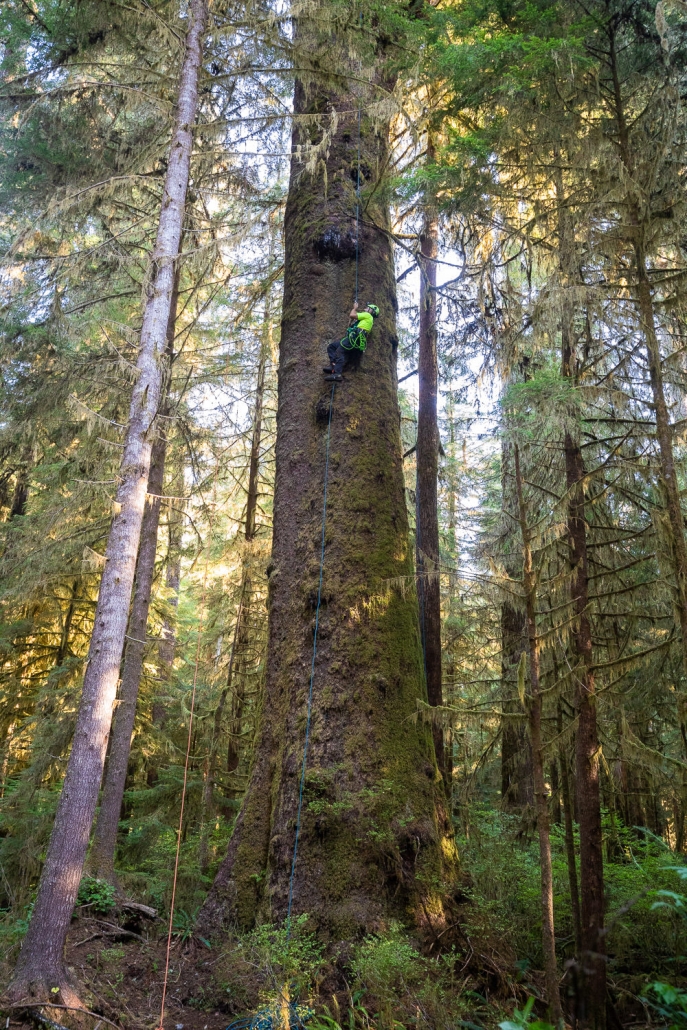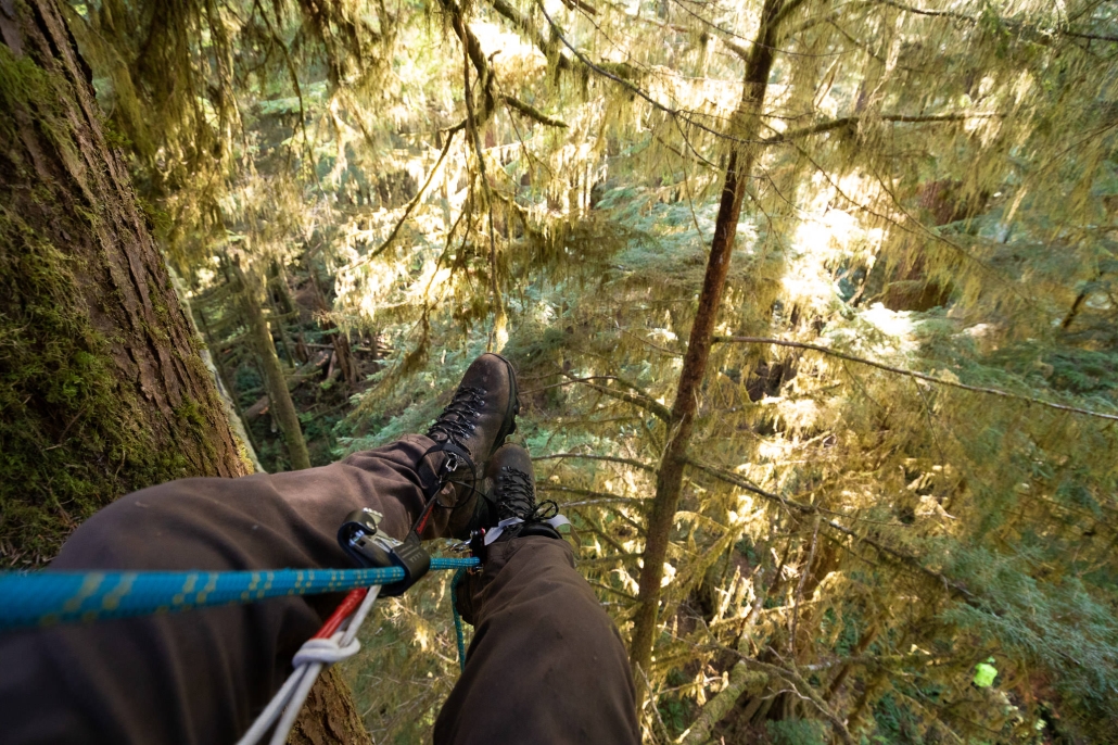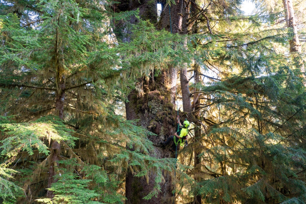 The tree was identified by AFA’s TJ Watt and Ian Thomas while exploring the Carmanah Valley in the spring of 2022 and climbed later in the fall with the help of professional arborists with Bartlett Tree Experts. The images are being released for the first time today to celebrate Earth Week. See an incredible video of the climb here.