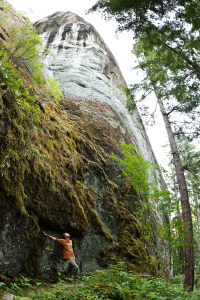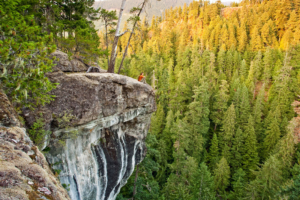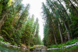 Upstream from the famed Cathedral Grove in MacMillan Provincial Park near Port Alberni is the spectacular Cathedral Grove Canyon. Below the towering cliffs, giant old-growth Douglas-firs and redcedars grow alongside the clear waters of the Cameron River here in Hupačasath, Tseshaht, Snaw-naw-as, Snuneymuxw, and K’ómoks territory. Mosaic Forest Management is the private land owner, and in years past, old-growth trees were marked for potential logging before plans were put on hold due to a public outcry. A Provincial Land Acquisition Fund is needed to help purchase and protect endangered old-growth forests and areas of high recreational value on private lands, such as the spectacular Cathedral Grove Canyon.