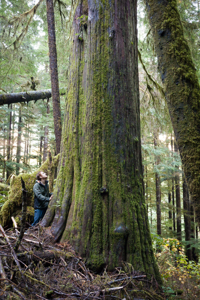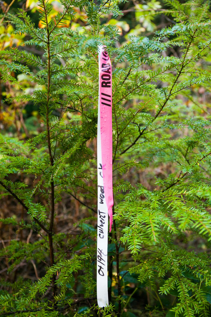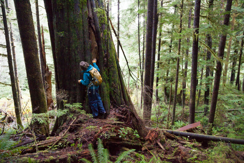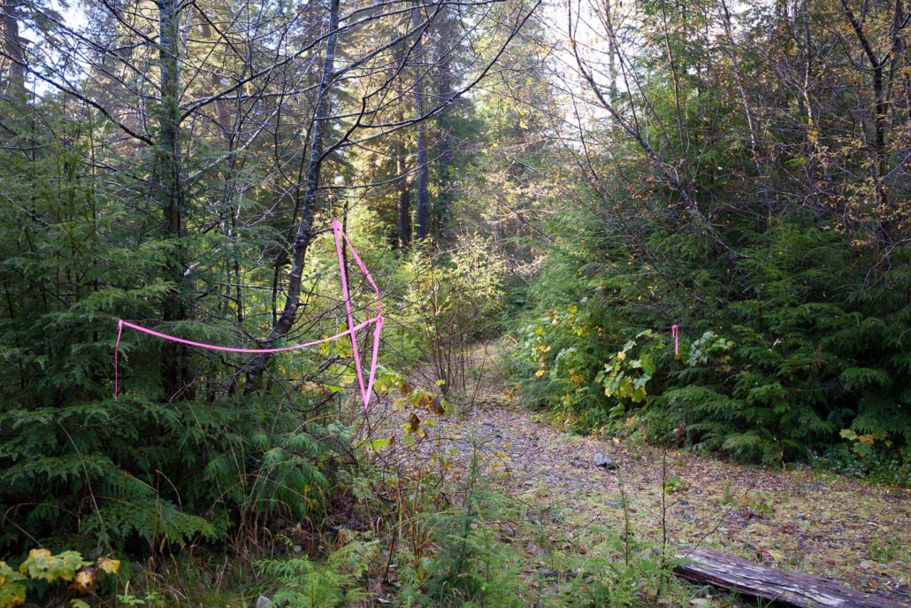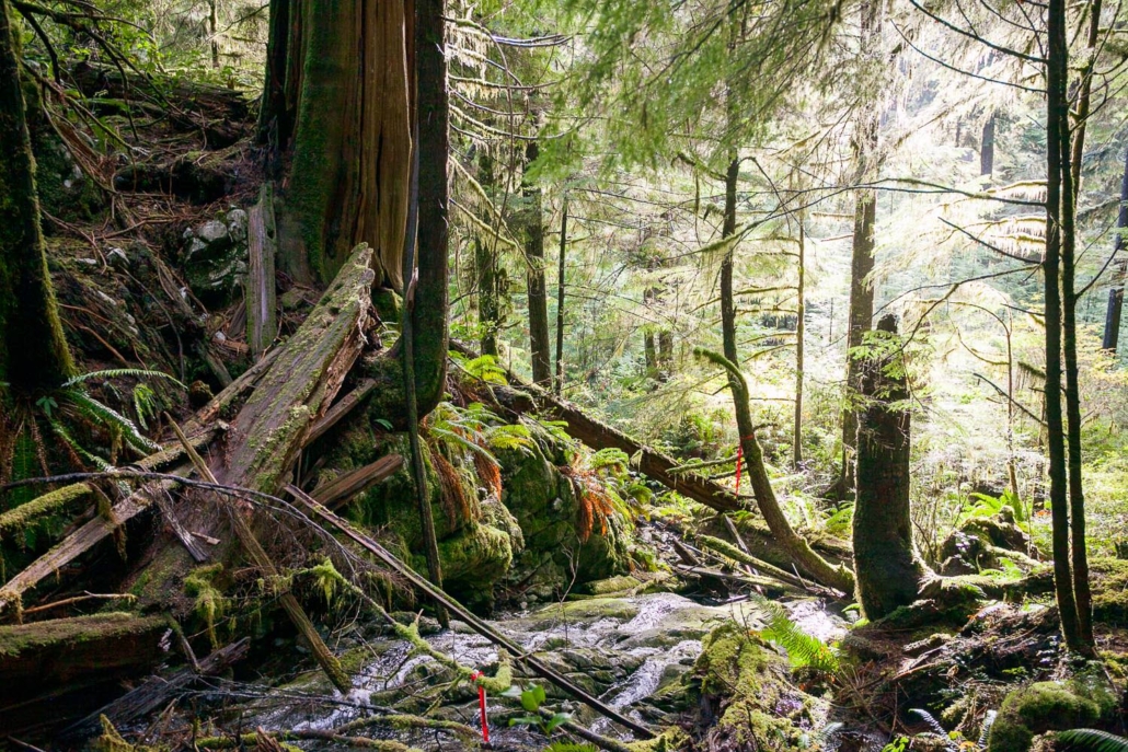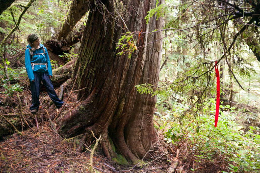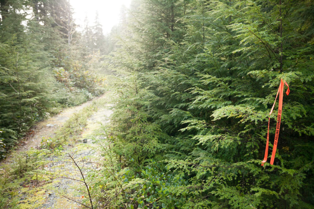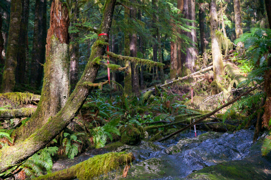 In November 2014, survey tape marked “falling boundary” and “road location” was discovered by hikers in the unprotected portion of the Walbran Valley, one of the most iconic and grandest old-growth temperate rainforests in Canada. Members of the Ancient Forest Alliance went to investigate and confirmed the potential logging threat.