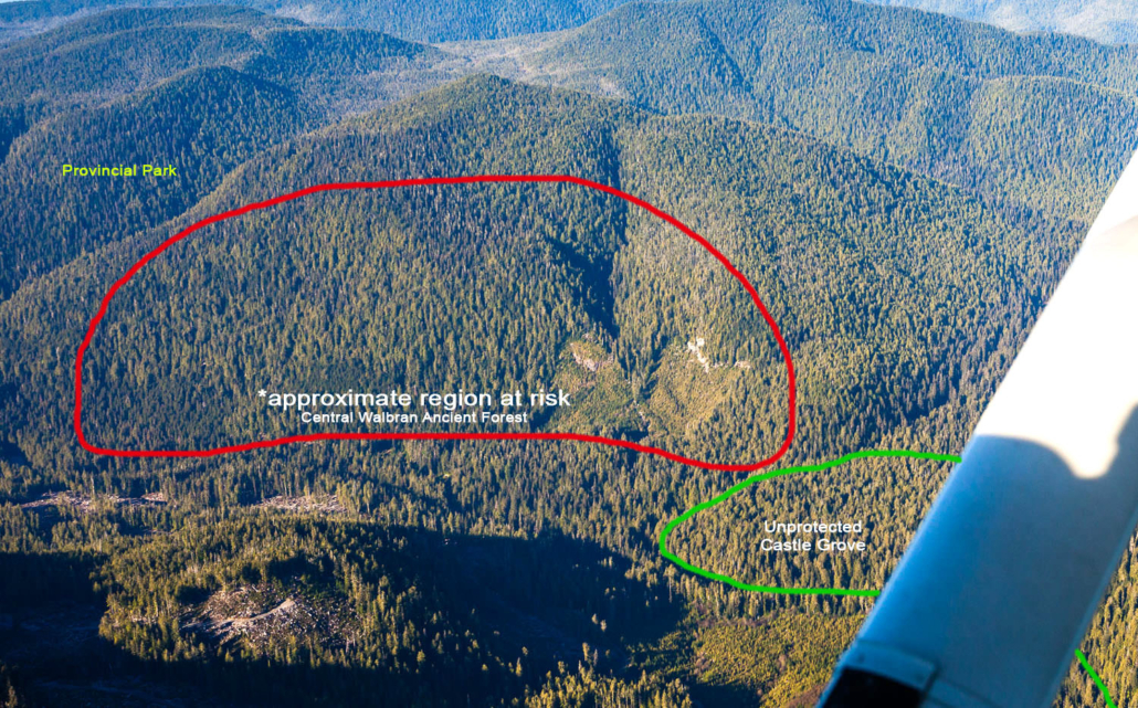 *Also pictured are photos of a 2013 clearcut by Teal Jones a few kilometres away in the Upper Walbran Valley.