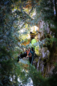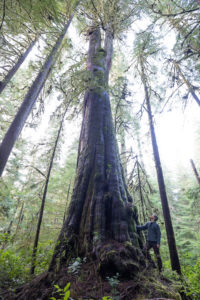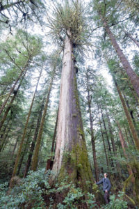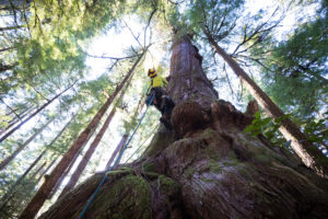 In March 2020, with the help of our friends at Expedition Old-Growth, we were able to climb and measure the grove’s biggest tree: an enormous, burly cedar that came in at 175 feet (53 meters) tall and nearly 14 feet (4+ meters) wide! Eden Grove and the remaining ancient forests on Edinburgh Mountain comprise one of the most outstanding, unprotected old-growth “hotspots” on Vancouver Island, where over 96% of big-tree forests have already been logged.