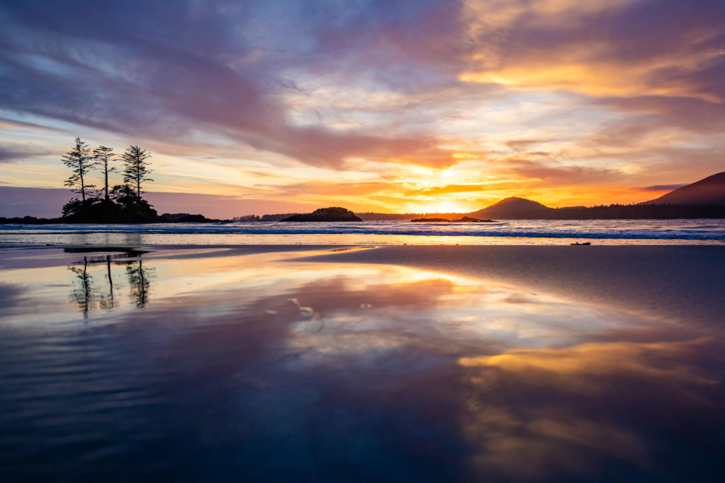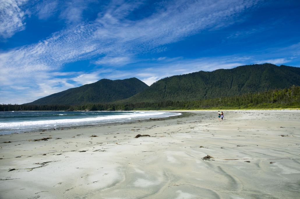 Flores Island is found north of Tofino in Clayoquot Sound in Ahousaht territory and is one of the largest contiguous areas of old-growth forest left on Vancouver Island. The stunning 10 km walk along the Wild Side Trail travels up the Island’s beaches while dipping in and out of the amazing coastal rainforest, where it eventually reaches the blue waters of Cow Bay. Here, gray whales can be seen year-round and wolves, cougars, and bears cruise the beach at night. See the Maaqutusiis Hahoulthee Stewardship Society for water taxis departing from Tofino and trail fees or Ahous Adventures for eco-cultural tours.