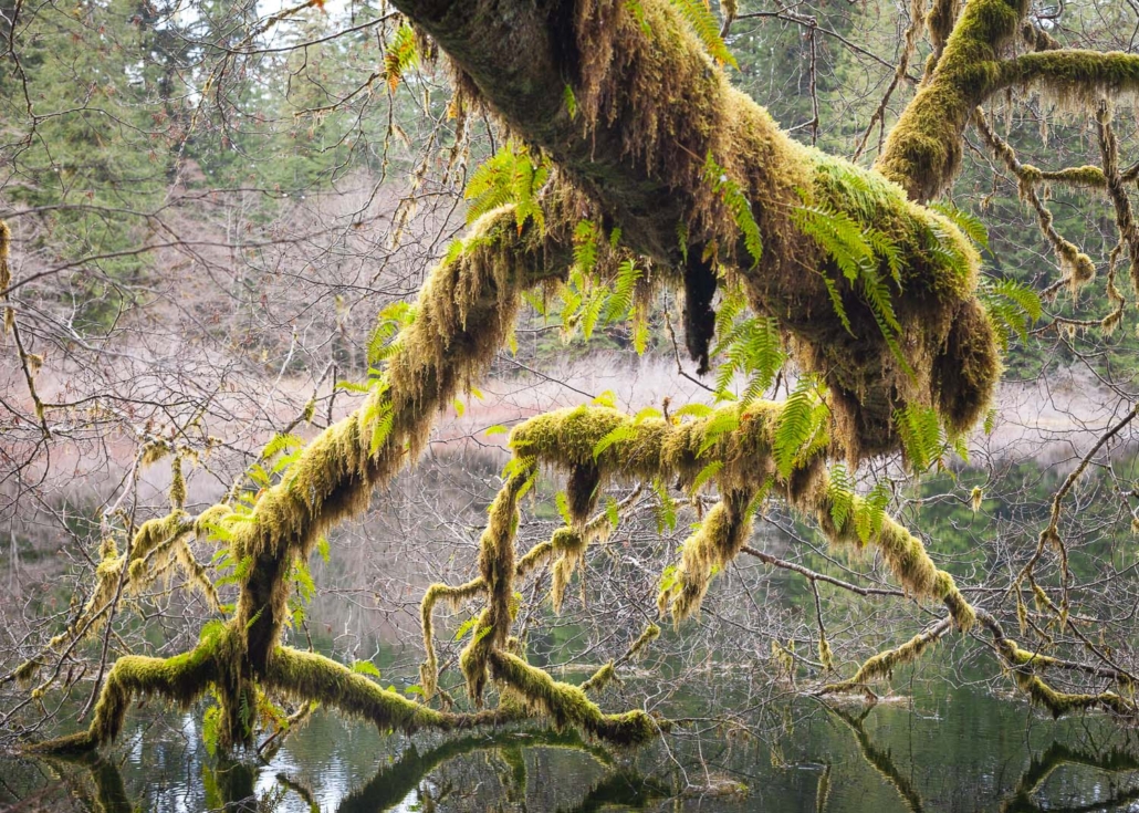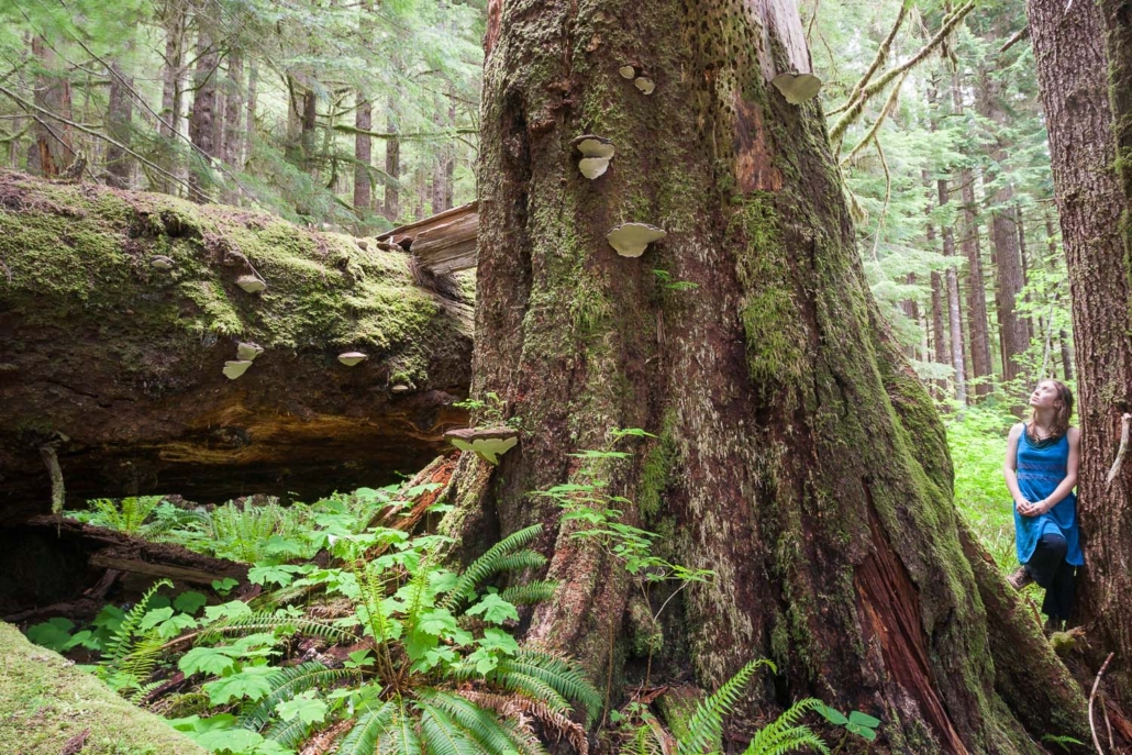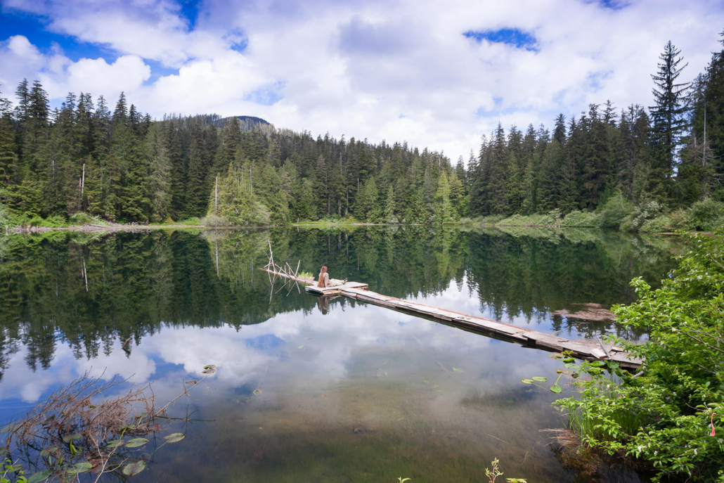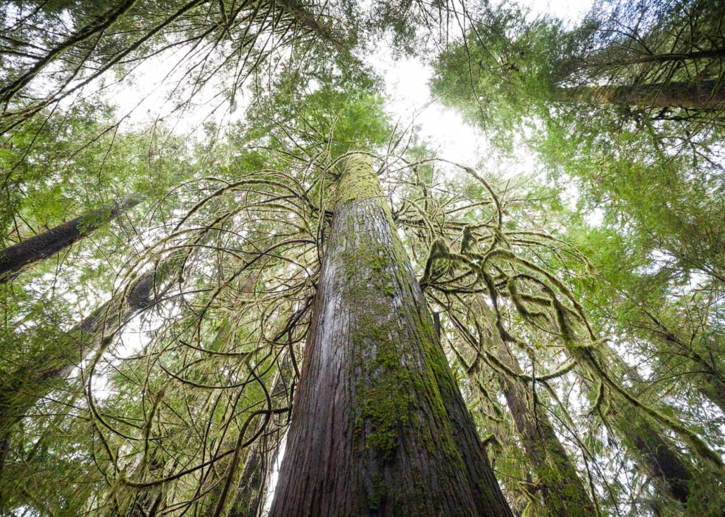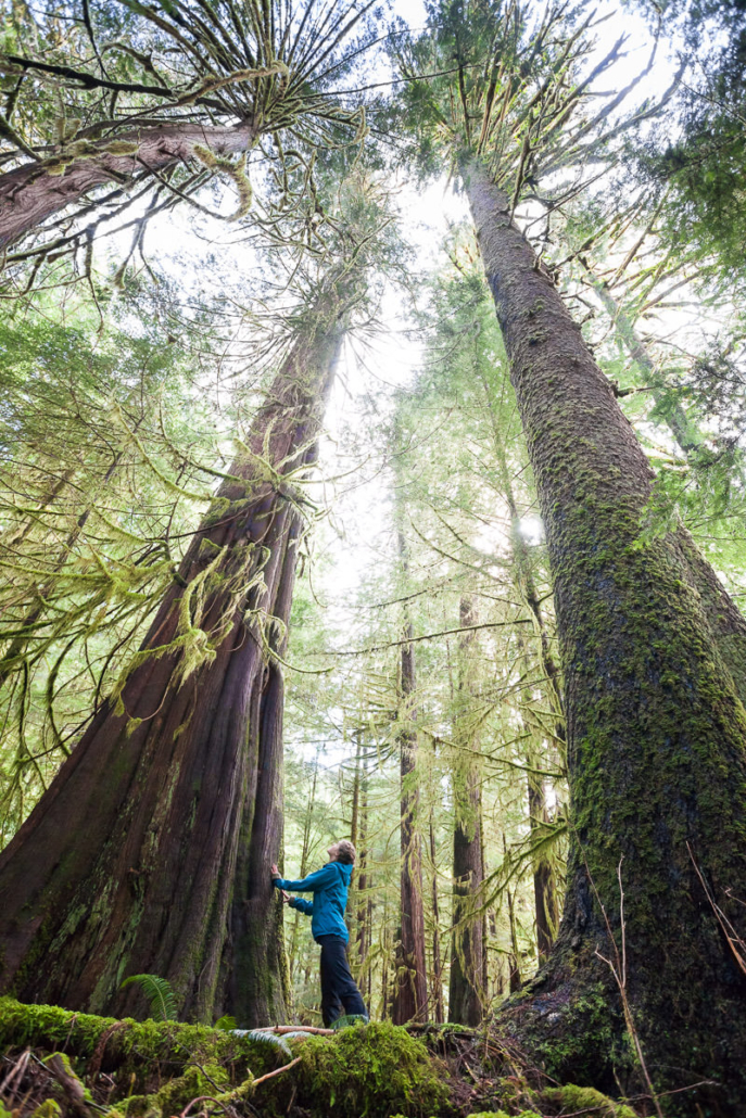 This little lake, just outside of the Walbran watershed on southern Vancouver Island in Ditidaht & Pacheedaht territory, is ringed with beautiful and majestic old-growth temperate rainforest. The massive standing and fallen logs (like the giant Sitka spruce snag), multitudes of dense, towering giants, and sheets of hanging mosses everywhere are so grand here that they resemble the famed forests of the Olympic Peninsula in Washington State.
