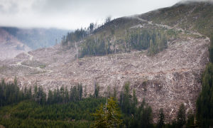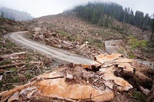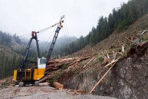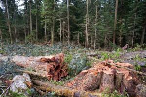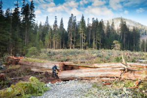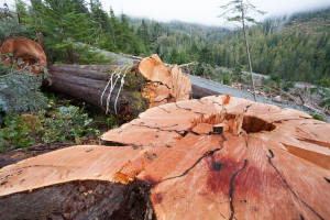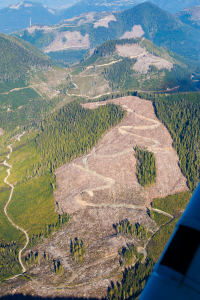 Old-growth logging by Western Forest Products in the Klanawa Valley (TFL 44) on southern Vancouver Island, BC.