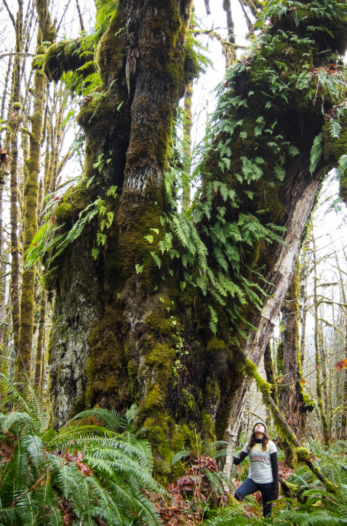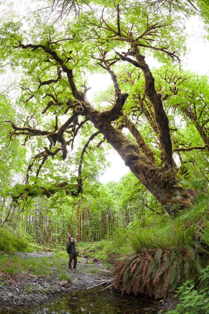Unlike most other spotlighted old-growth forests in BC that have all been coniferous or needle-leaf trees (Douglas-firs, Sitka spruce, western redcedars, etc.), this is an old-growth deciduous rainforest, making it one of the most unique old-growth forests in coastal BC. Diverse herbaceous plants, including spiny-stemmed giant devil’s club, grow here. Abundant tracks and scat reveal that legions of elk, deer, wolves, cougars, and black bears make this area home. This area has also been nicknamed “Fangorn Forest” after the forest in The Lord of the Rings.