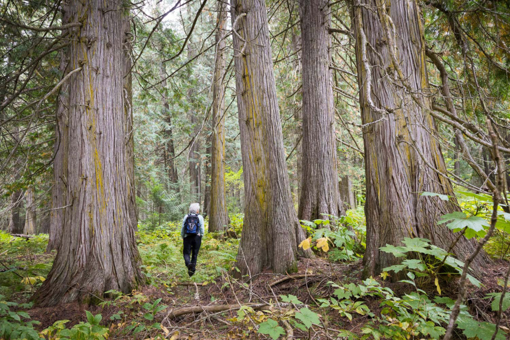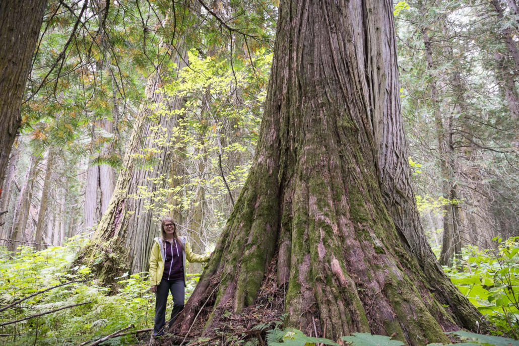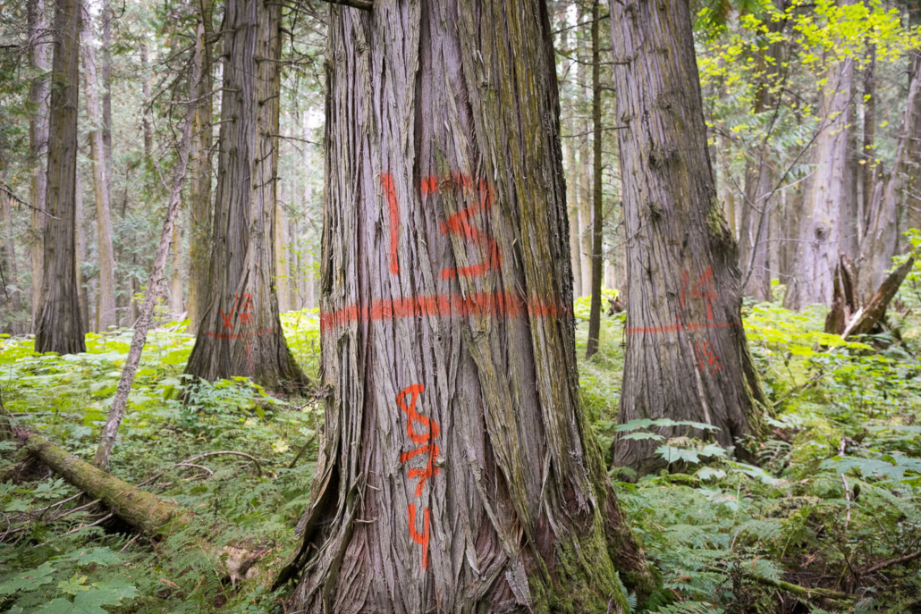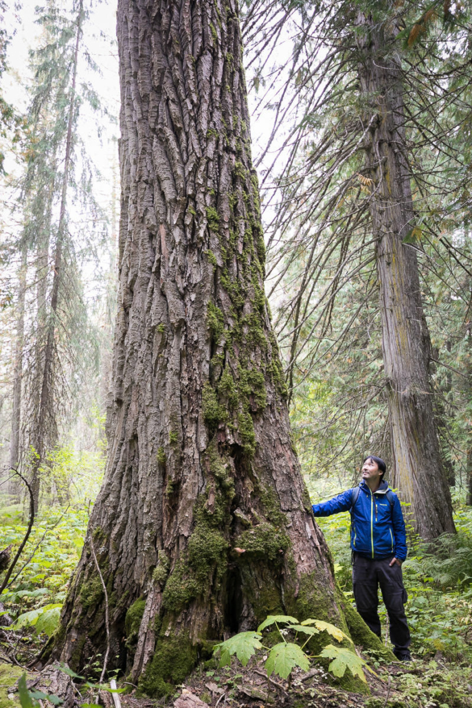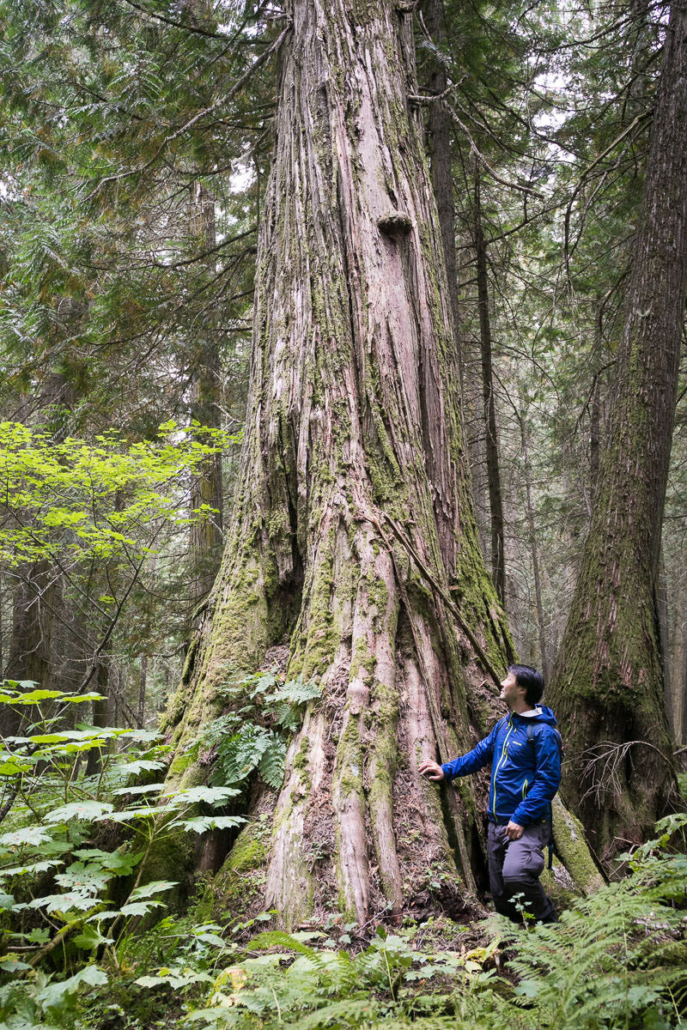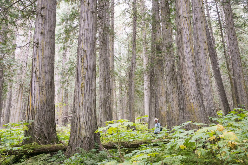 Parthenon Grove, east of Prince George in the Upper Fraser Valley, is one of the most magnificent old-growth forests. This is a globally significant, ten-kilometer-long track of valley-bottom old-growth redcedars unlike any remaining stands of Inland Temperate Rainforest that we know of. Most of these forests are found in much smaller fragments on more rugged terrain. While some of it is protected in Old Growth Management Areas, there are various “holes” in the protection that have excluded some of the finest and largest ancient cedars. This area is also an important wintering area for the highly endangered Mountain Caribou, an old-growth-dependent ungulate that has dwindled to 1300 individuals when tens of thousands or more once roamed the inland rainforest of BC.