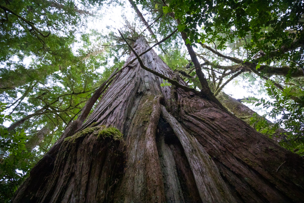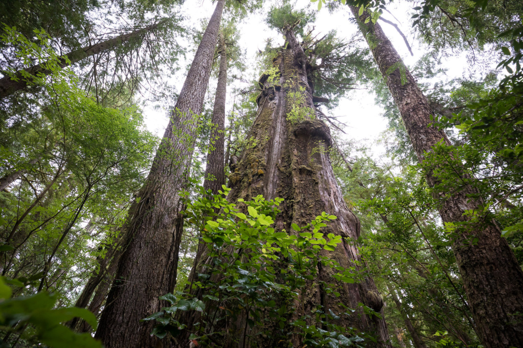 In the summer of 2021, Ancient Forest Alliance explored the stunning old-growth forests along the shores of Vernon Bay in Barkley Sound in Uchucklesaht and Tseshaht First Nations territory. Here, we measured monumental redcedar trees up to 12 feet (3.7 metres) in diameter amongst lush ferns and berry bushes. A large number of Culturally Modified Trees were also noted.