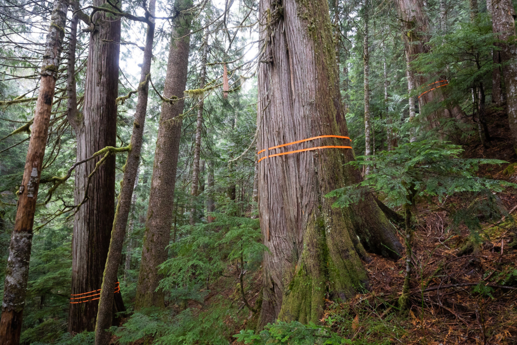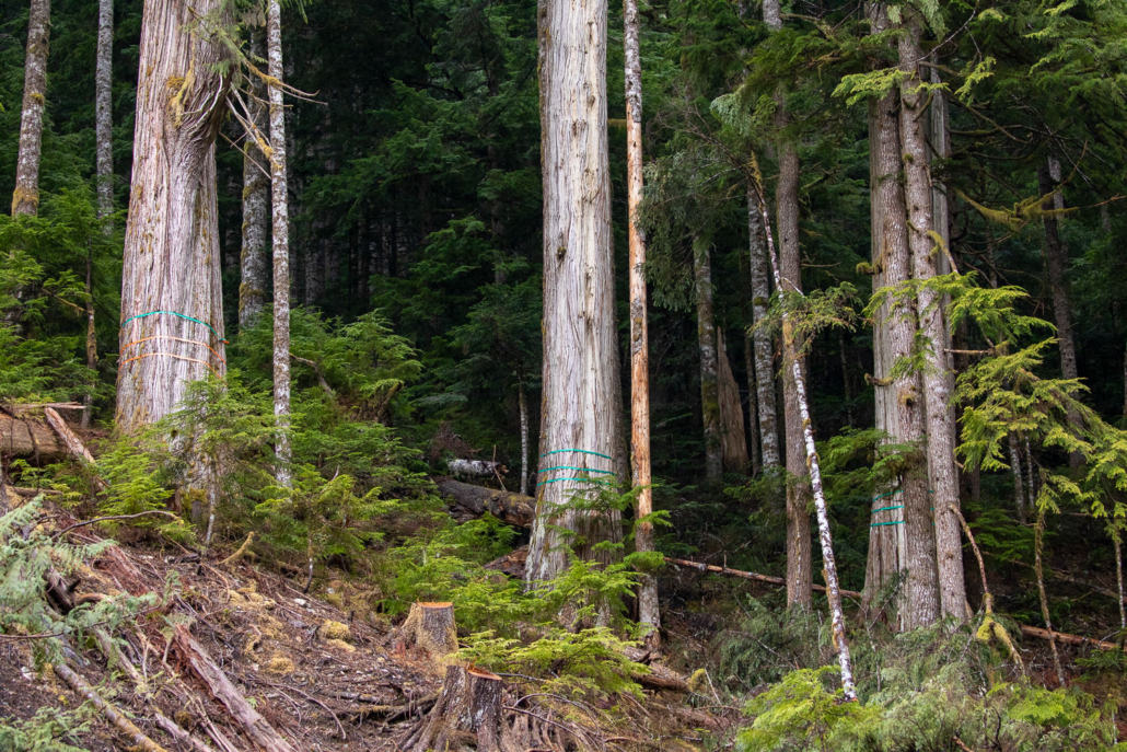 Seen here are “before” images captured in 2020 in an active Western Forest Products cutblock in the upper reaches of the Walbran Valley in Pacheedaht territory. Scores of giant cedars were banded in preparation for falling. In 2024, the forest was sadly logged. “After” photos will now have to be taken. The ongoing logging of endangered old-growth forests must come to an end.