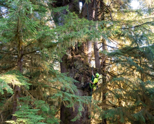 Conservationists locate and climb the largest Sitka spruce tree in BC’s famed Carmanah Valley