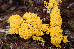 This strange conglomerate being is observable in the forest as threads of brightly coloured “slime” creeping over rotting logs. This plasmodium is able to move through a process called “cytoplasmic streaming” as it hunts for microscopic prey along the forest floor. These plasmodiums can cover an area of 30 square metres despite being technically a “single” cell. When the food supply is exhausted the slime mold develops fruiting bodies to seed the forest with its spores.